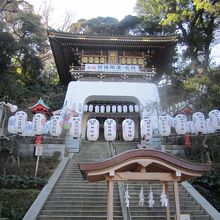 江島神社 瑞心門は、神奈川県藤沢市江の島にあります。江の島弁天橋から江の島にわたり、江島神社へと向かうと一番最初に見えてくる江ノ島の象徴のような門です。くぐるだけでも縁起が良さそうです。年末に行ったのですがお正月の準備をしていました。