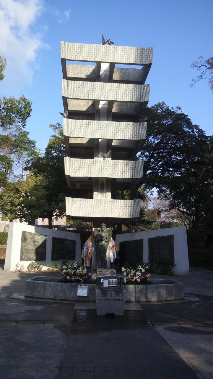原爆ドームの南側にある5層の慰霊塔、原爆の犠牲になった6,000人以上の学徒動員を慰霊するために建立されたそうです。パネルには原爆以外も含めた動員学徒戦没者の出身校が記載されていましたが、広島県の次に多いのは静岡県でした。