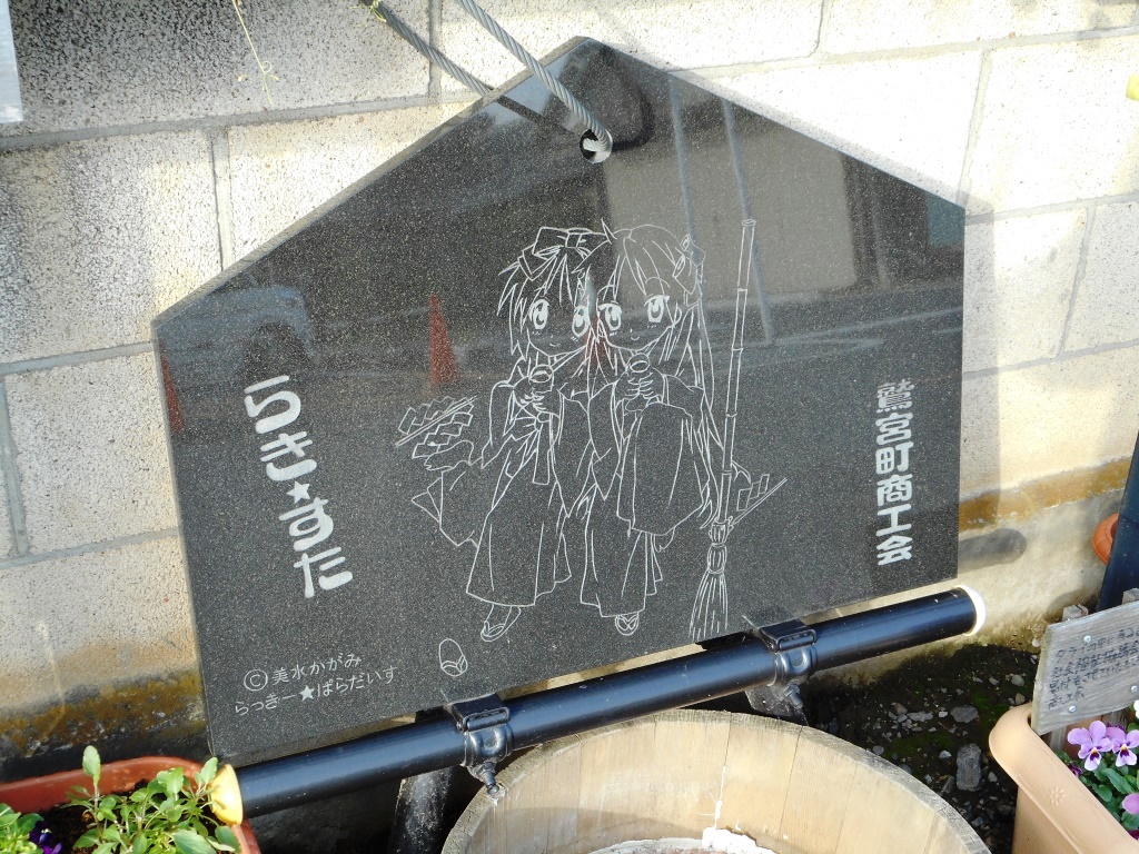古くて由緒あり、重文も存在する主要な神社でもともと参拝客も多かったのだが、アニメの舞台になってから参拝客が激増し、初詣参拝客が毎年47万人(県下2位)という凄いことになっている(1位は大宮の氷川神社)。同じくアニメ関連の参拝で有名な神田明神が30万だから、その凄さが分かる。