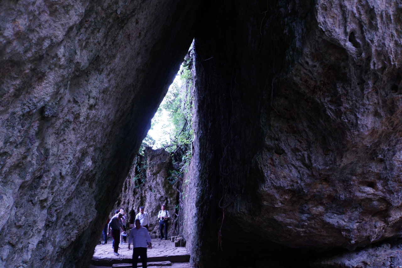 そのうち「三庫理(さんぐーい)」と言われる拝所には巨岩が三角形のトンネルを創り、トンネルを抜けた所にある拝所に香炉が置かれています。