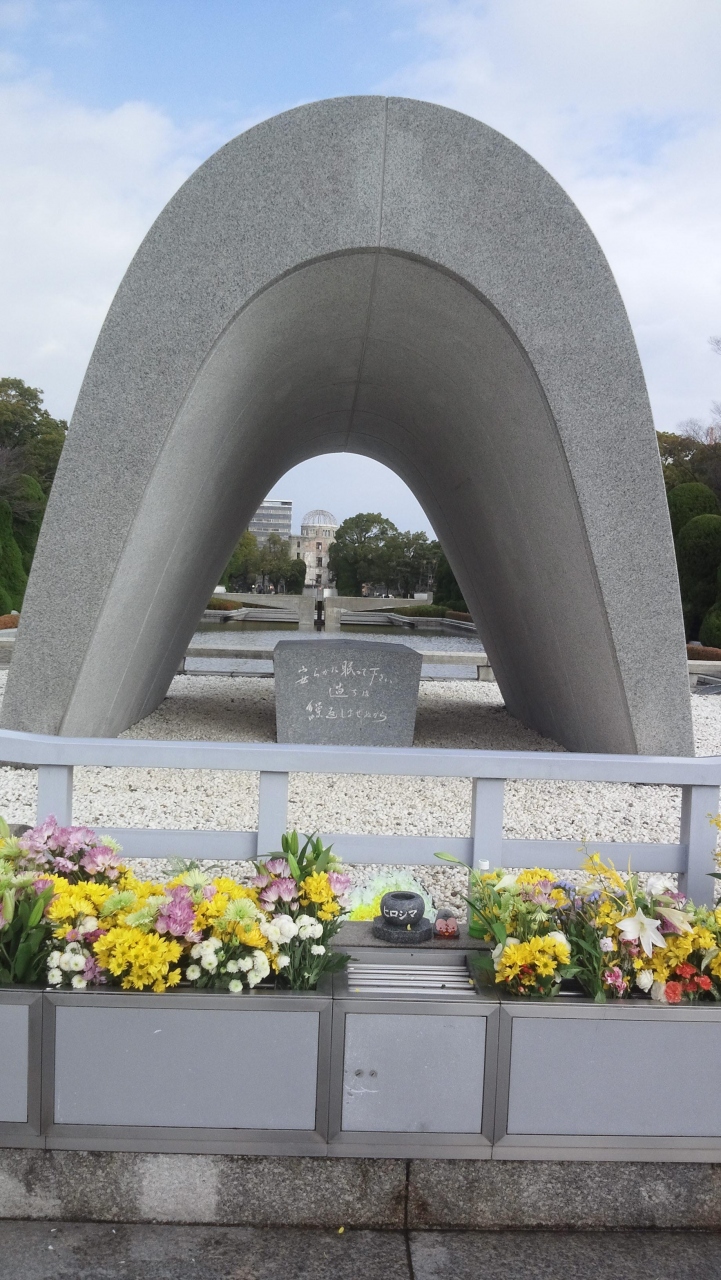 出張で訪れた際、平和大通や鯉城通はよく通っていましたが、平和記念公園の中に入って実際に慰霊碑をみたのは初めてです。ここに納められている原爆死没者名簿には、30万人近くのお名前が記帳されているそうです。「安らかに眠って下さい 過ちは繰返しませぬから」という碑文、心に強く響きました。