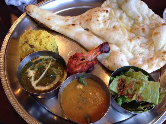 プレートランチ(1280円)を注文。本日のカレー2種、タンドリーチキン、サラダ、サフランライス、ナン、それにドリンクがついてきます。カレーが2種類楽しめるのは嬉しいけど、本日のカレー(980円)に比べるとカレーとサラダの量が少ないような気が…そしてチキンとライスがプラスなだけで300円の差。うーん。