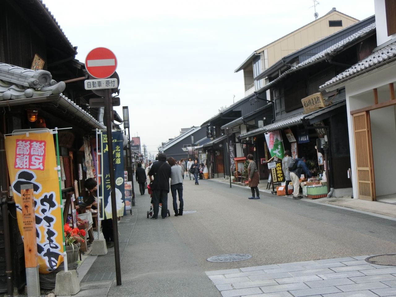 犬山城から南へと続く通りに食べ歩きのできる店や雑貨店などが点在しており、雰囲気のいい木造の古民家が続く町並みは、散策するには持って来いな感じでした。