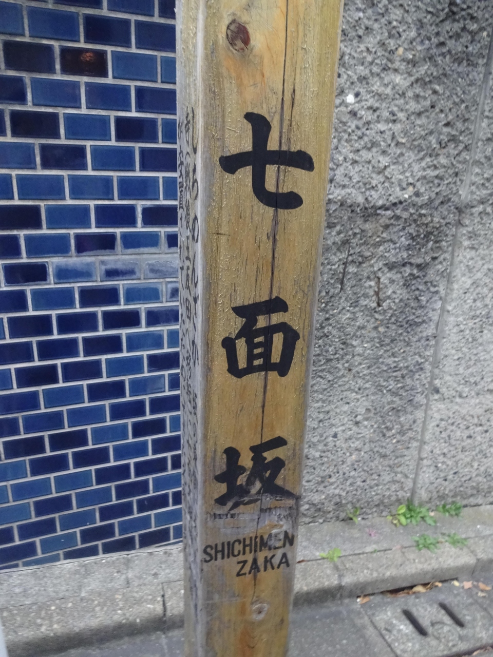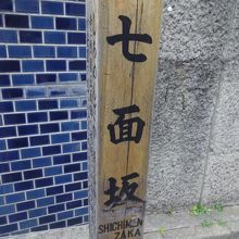 坂の由来は、昔、坂の途中にあった寺の七面大明神から。