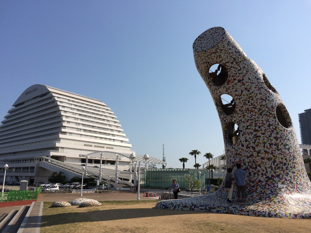 オカリナの形と近くにいた市の方から聞いて、なるほどと思いました。ちょっと変わったかたちですが、愛くるしいオルタンシアの鐘。もともとは内部に鐘があって、定時になっていたようですが、震災以降は鐘が鳴らなくなってしまったようで、残念です。