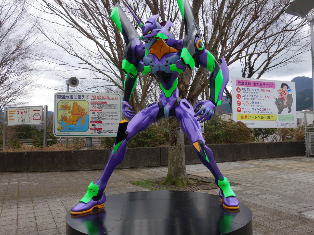 エクスパーサ足柄下り線はエヴァンゲリオンの駅です。どうしてこうなったのか詳細は知りませんが,いろいろなフィギュアが飾られています。エヴァンゲリオン好きにはたまらないサービスエリアでしょう。飲食店やみやげ物店も充実しているところです。