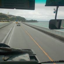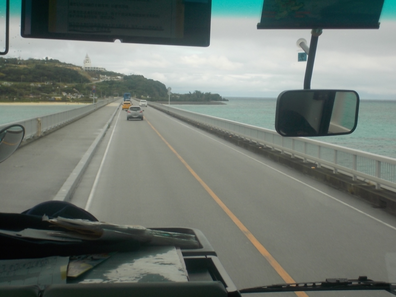 那覇バスの観光バスで「今帰仁城」観光の後に、古宇利島に、この「古宇利大橋」を渡りました。 遠くから見ても、とても綺麗な橋で、島までつながっているのですが、渋滞もしていなくて、気持ちが良く通行しました。 古宇利タワーの頂上からも、この綺麗な大橋が見えました。