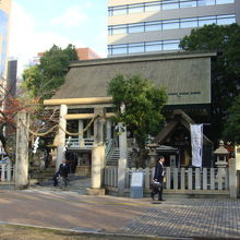 「しらかみしゃ」と読みます。白神社は平和大通りと鯉城通りとの交差点横に鎮座する街中の小さな神社です。昔はこの付近はまだ海で海難事故が多く岩礁に白いお札を立て安全祈願をしていました。そのためか社殿はその岩礁の上に建てられています。また境内にある石灯篭は原爆投下当時のものが残っており、広島原爆遺産に指定されています。朝早くから出勤前のサラリーマンが参拝に訪れていたのには驚きました。