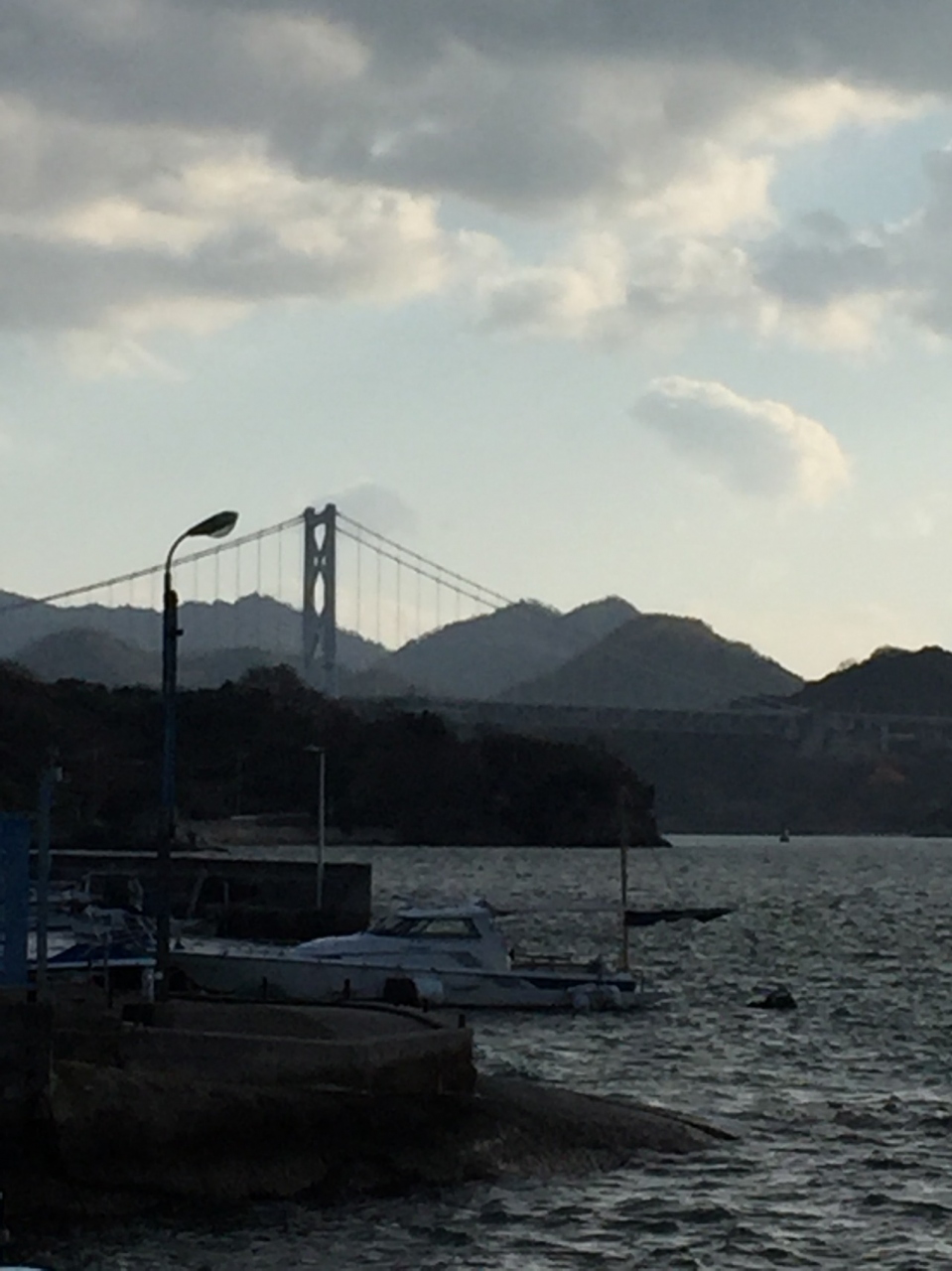 道路の青い線を辿って行けば、今治まで行けるそうです。70km位(笑)スタートが遅かったので(14時過ぎ)、あんまり走っていない。誰もいないと寂しいし。風が冷たくて寒いし、18時には戻らないといけないので、5km地点で断念(笑)みかんの販売所に寄ったら、あまりにも美味しくて、安いので自宅に送ってもらうことに。紅マドンナ300円、みかん300円、レモン150円、採りたての椎茸250円、送料800円は安い(^^)