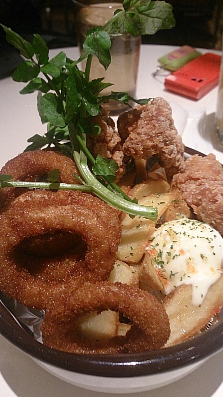 ランチには遅く、飲みに行くにはやや早い休日の16時。どうしてもビールが飲みたかったのでこちらで、フライ盛合せをツマミにビールをいただきました。一人では絶対に入らないタイプのお店ですが、料理もボリュームがあり思いのほか楽しめました。