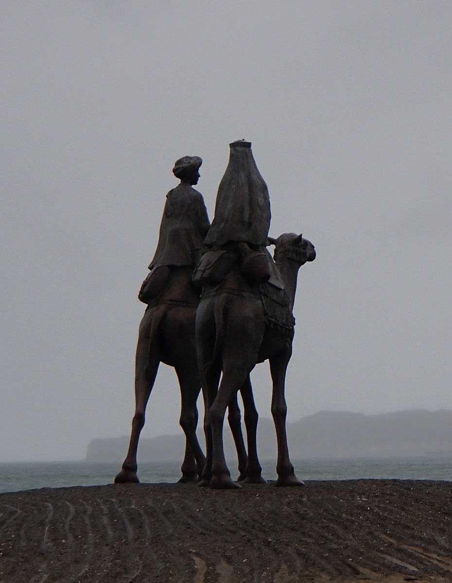 月の沙漠という歌のモデルになった場所だそうで、アラビア風のラクダに乗った王子と王女の銅像が建っています。