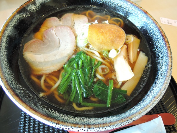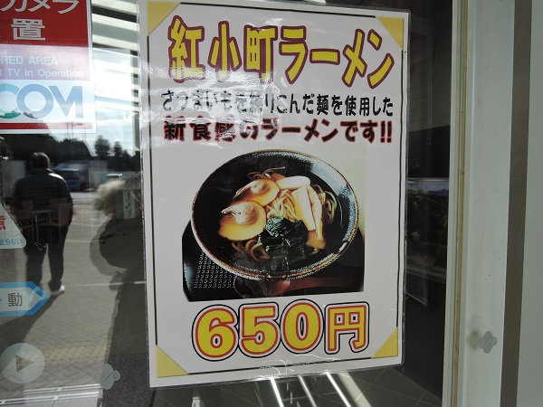 野菜や芋を沢山購入した後、ちょうどお昼時だったのでランチを頂きました。紅小町ラーメンと言う、芋が練りこんである麺のラーメンを頂きましたが、麺はトロットした感じで美味しかった。その他のメニューも比較的安いのにボリュームがあって美味しい。