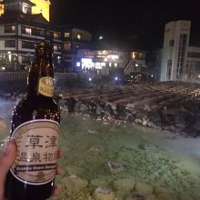 草津温泉に行った際に夜にライトアップされた湯畑を見に行きました。ライトアップあれており、昼間とは違った湯畑を見れました。近くにはまんじゅうやさんや飲み物も売っていました。ベンチに座ってゆっくり、飲食している方もいました。