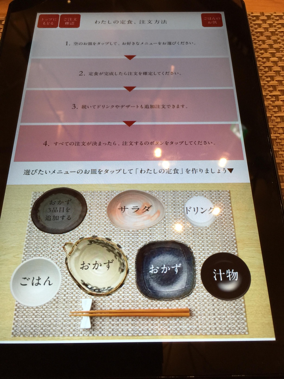 iPad の様なメニューを持ってこられて