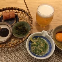 +牛肉と牛蒡の炊合せ+ビール です。