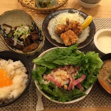 ご飯+サラダ++汁物+おかず(2種 or 3種)+飲物
