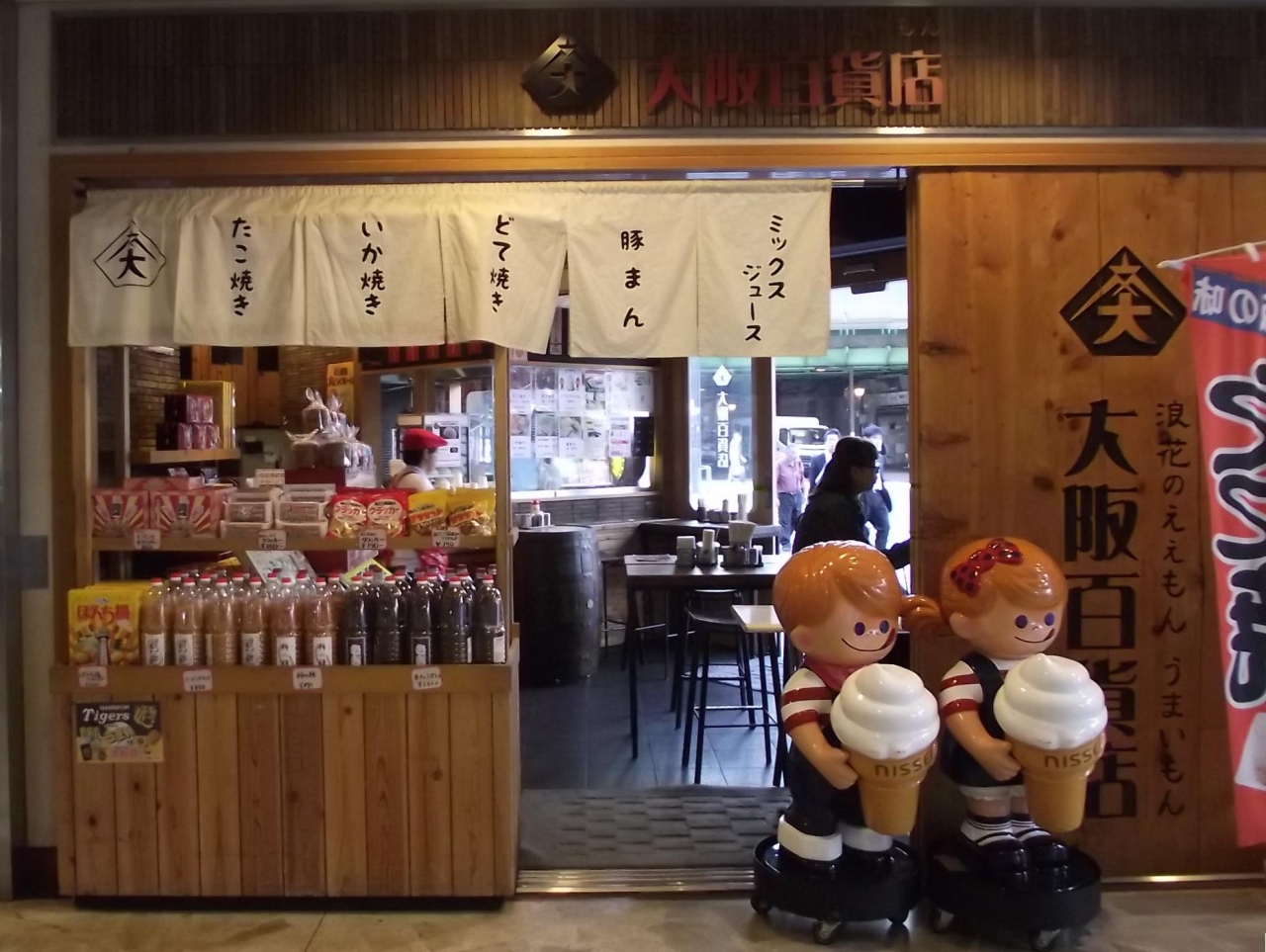 ここは、JR有楽町駅前の東京交通会館1階にある大阪百貨店隣りで イートインスペース と言うか、本場大阪仕込みのたこ焼きやいか焼き、豚まんなどが食べれるところです。