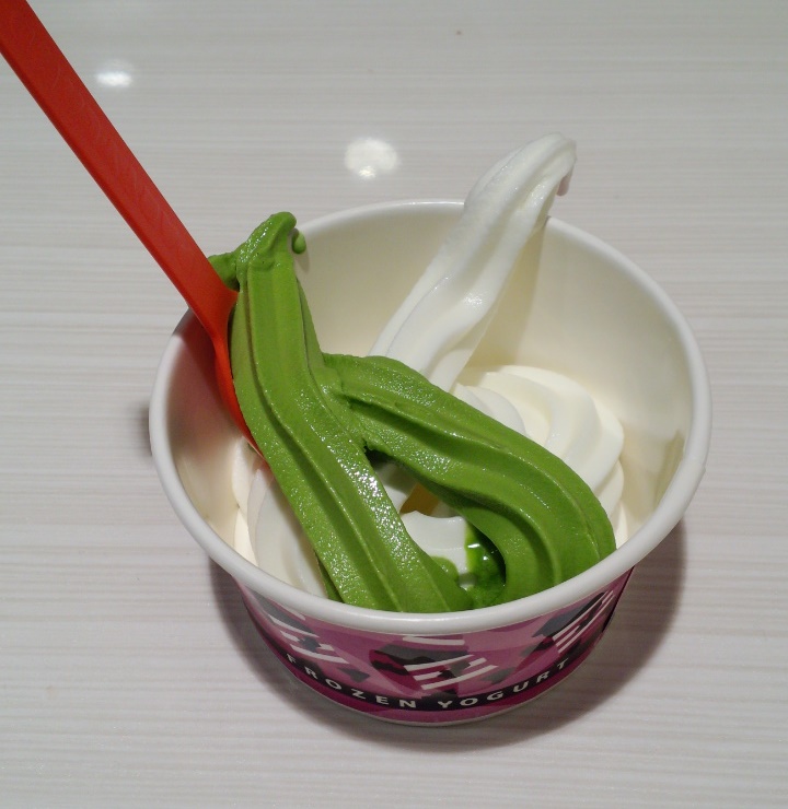 1階で自分でカップをとって好きな味のヨーグルトをレバーを引いて入れます。