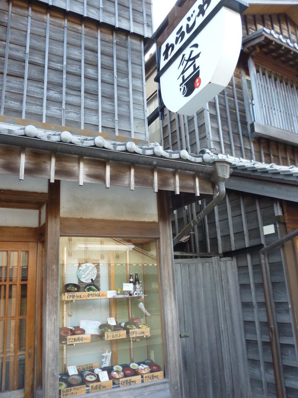 伊勢神宮内宮への参道であるおはらい町にあります。参拝を終えて昼食にしました。ここは手こね寿司と伊勢うどんのセットがあり、伊勢名物をいっしょに2品食べることができます。もう1つ松阪牛丼を注文して2人で分けると、がっつり名物がいただけます。
