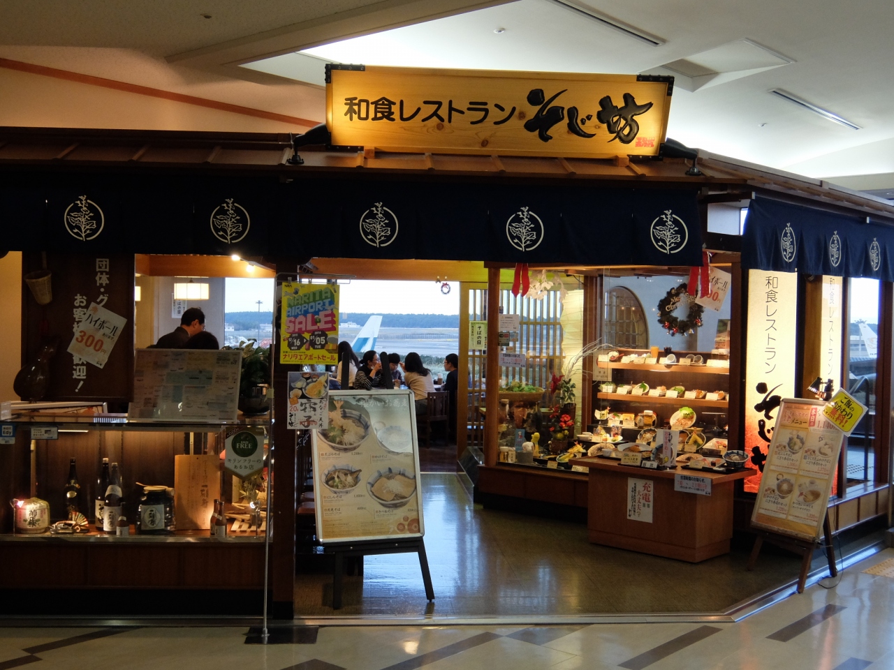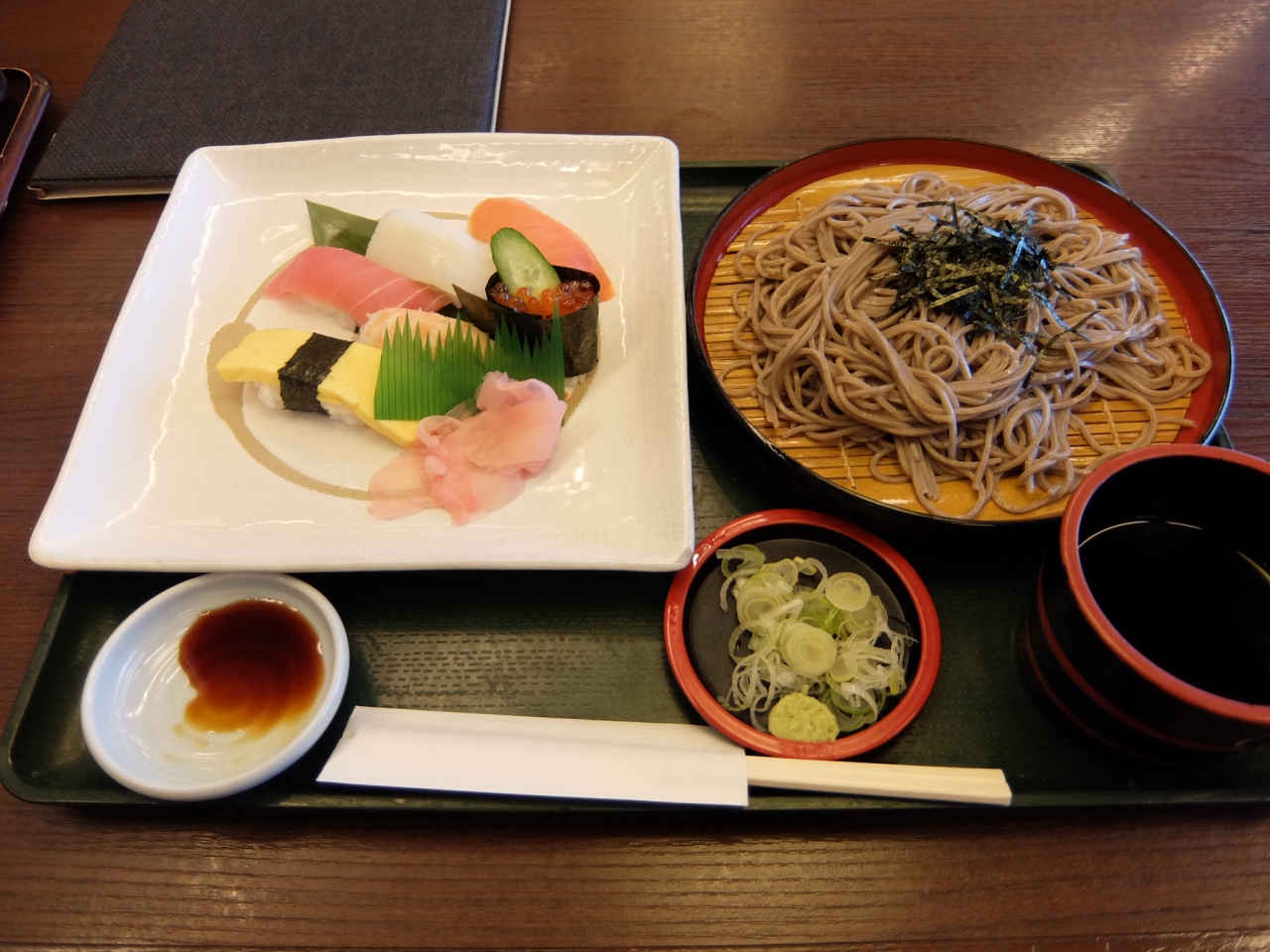 出発前の遅い昼食を何にしようかといろいろなレストランを見て回って,ここに決めました。それは,「そば+握り寿司」のセットが1,220円で食べられるので,そのお得感です。その他にもお得なセットがありました。
