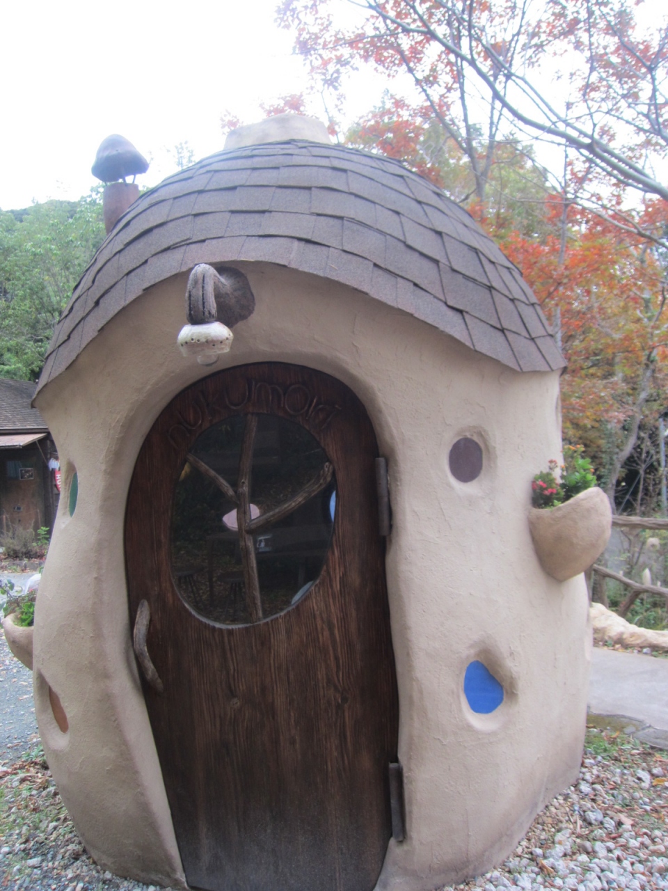 雑貨屋さんがあるということで気になって寄ってみましたが、駐車場が有料でした。500円で、停めて数分のところにぬくもりの森があります。かわいらしい建物が点在していて、花屋さん、ジブリ商品やアジアン雑貨の雑貨屋さん、ケーキ屋さん、柔道着を使ったバッグ屋さんなどがありました。家族連れやグループなどたくさんの方が訪れていました。広くはないので、短い滞在になりました。