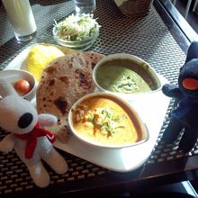 今回、ランチセットを頂きまして、ほうれん草ベースのカレーとキーマカレーをチョイス。どちらも素朴なお味で美味しかったです。