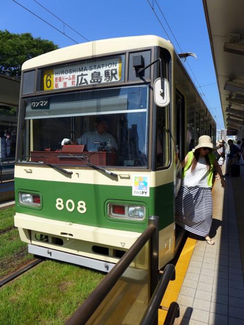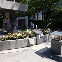 JR広島駅から約2.5km、ほぼ5分おきに出ている広島電鉄で17分の原爆ドーム前駅横に整備された広島平和記念公園内に動員学徒慰霊塔があります。