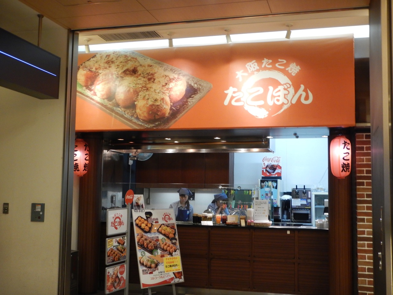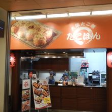 羽田空港国内線 第一旅客ターミナル 地下一階のフードコートの中にあります。大阪たこ焼きのお店で、たこ焼きの種類も定番のソース味以外にも、醤油ネギマヨネーズたこ焼きとか、だしたこ焼きとか、おろしポン酢たこ焼き、ラー油たこ焼きなどもありました。もちろん、テイクアウトもできます。