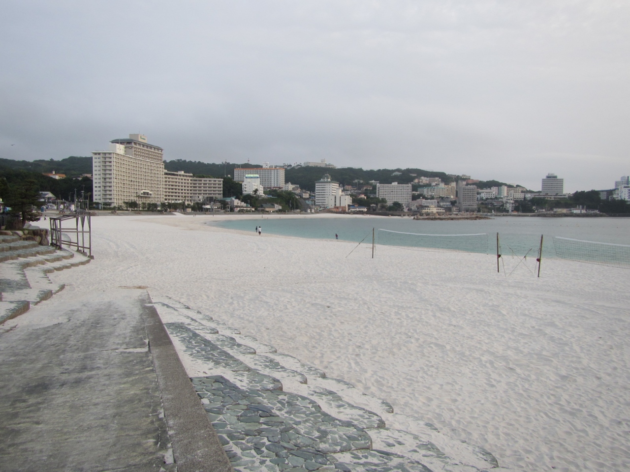 夕暮れ時で薄暗くなっていたが、砂の白さはよくわかる。夏の日中になればものすごい人であふれるのだろうなーと思いながら静かに浜を後にした。