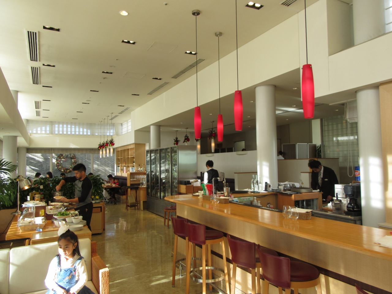 ホテルエミオン敷地内の別棟であるイタリアンレストランです。ヤシの木に囲まれた地中海沿いの雰囲気の白い建物、ガラス張りで日差しがいっぱい降り注ぐ店内はとても開放的です。ランチ利用で値段は少し高めでしたが、前菜はブッフェスタイルで野菜やパン、スープなどバランス良く取れ、メインのパスタ、ピザも丁寧に作ってあって美味しかったです。