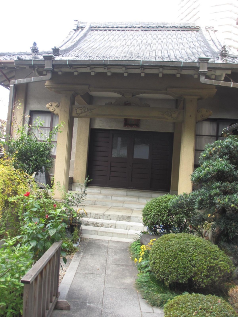 宗賢寺は、台東区池之端2丁目東大病院の北側にある1619年に創建された日蓮宗の寺院です。付近には寺院が多く、落ち着いた感じの場所にあります。小さな寺院ですが、本堂のクリーム色っぽい色使いが印象に残りました。