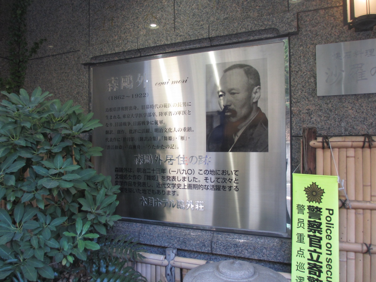 上野動物園の西側にある。水月ホテル鴎外荘という旅館の中にあります。根津駅から行くなら、不忍通りを南下して池之端2丁目交差点を左折して動物園に突き当たるまで歩き、突き当たったら左折すればすぐの場所にあります。「舞姫」はこの地で発表されたようです。日本文学史がお好きな方は訪れてみてはいかがでしょうか。