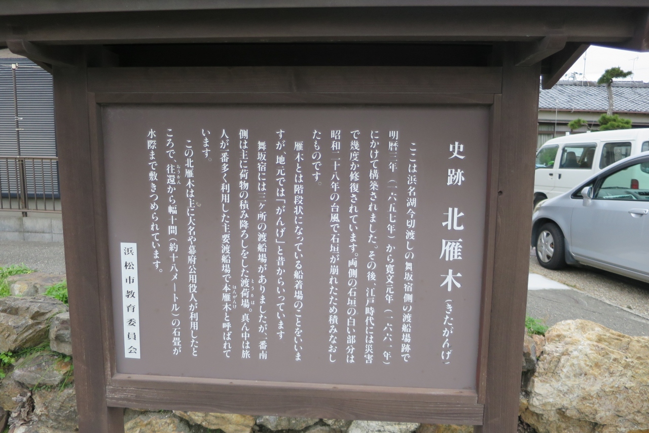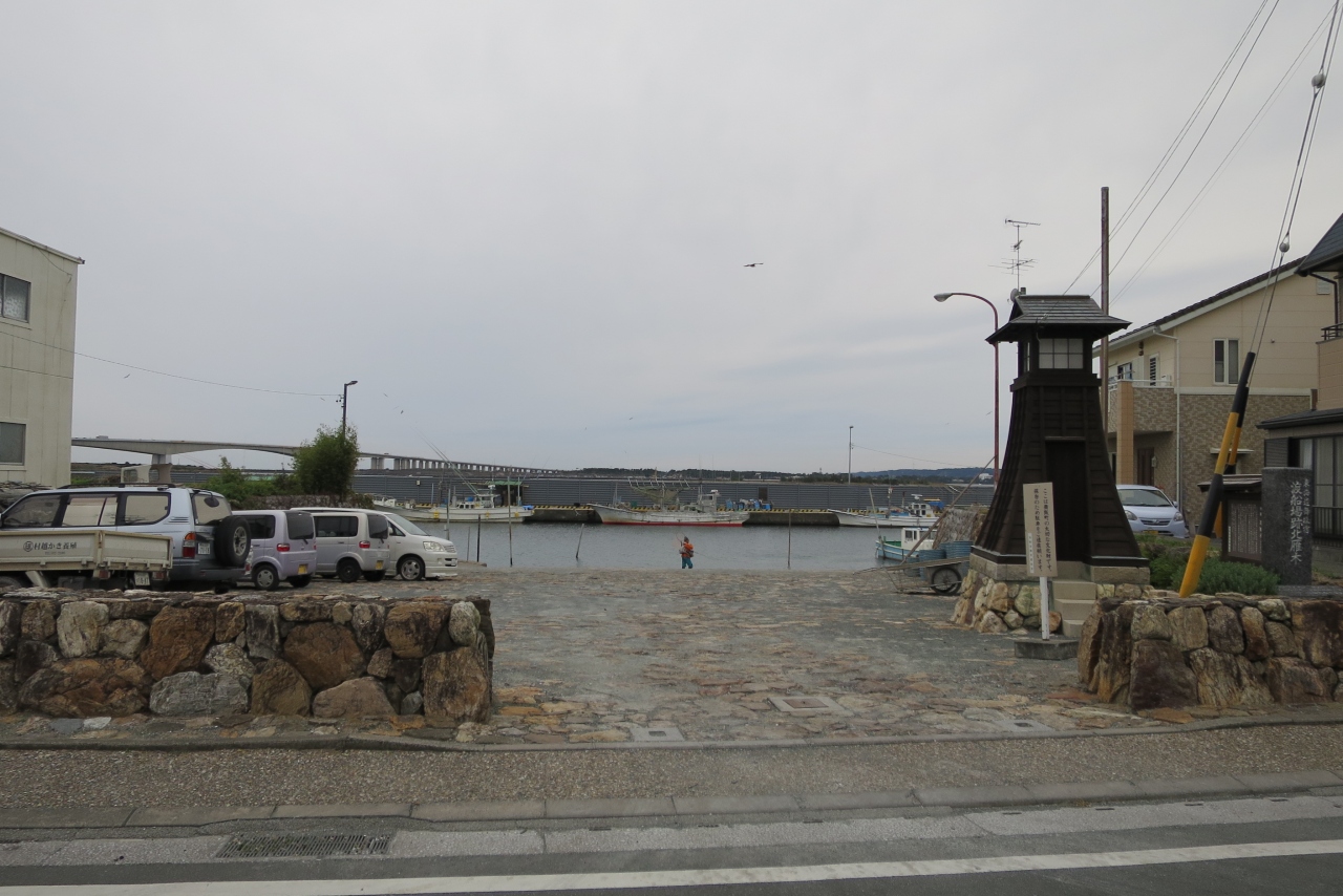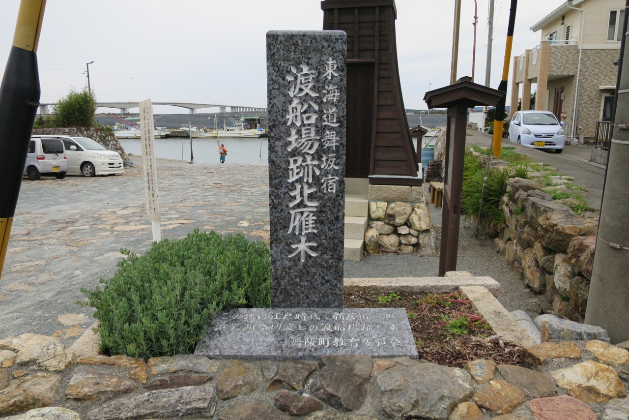 かつて今切れの渡し場だったところですね!舞阪漁港のすぐ隣にあります。大きな灯篭みたいなものが立っています。石碑の横には、詳しく説明書きもあります。車で来られた方は、専用の駐車場が無く、北雁木の広場に地元漁師さんに邪魔にならないところに止めると良いと思います?JR弁天島駅からも徒歩圏内ですよ!