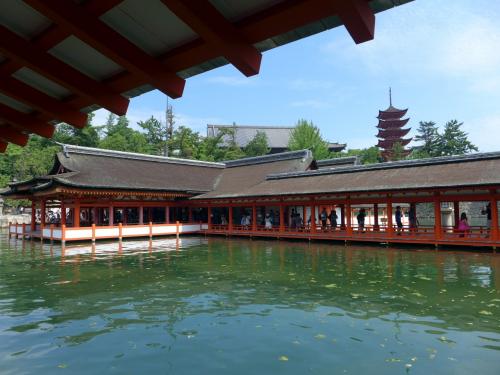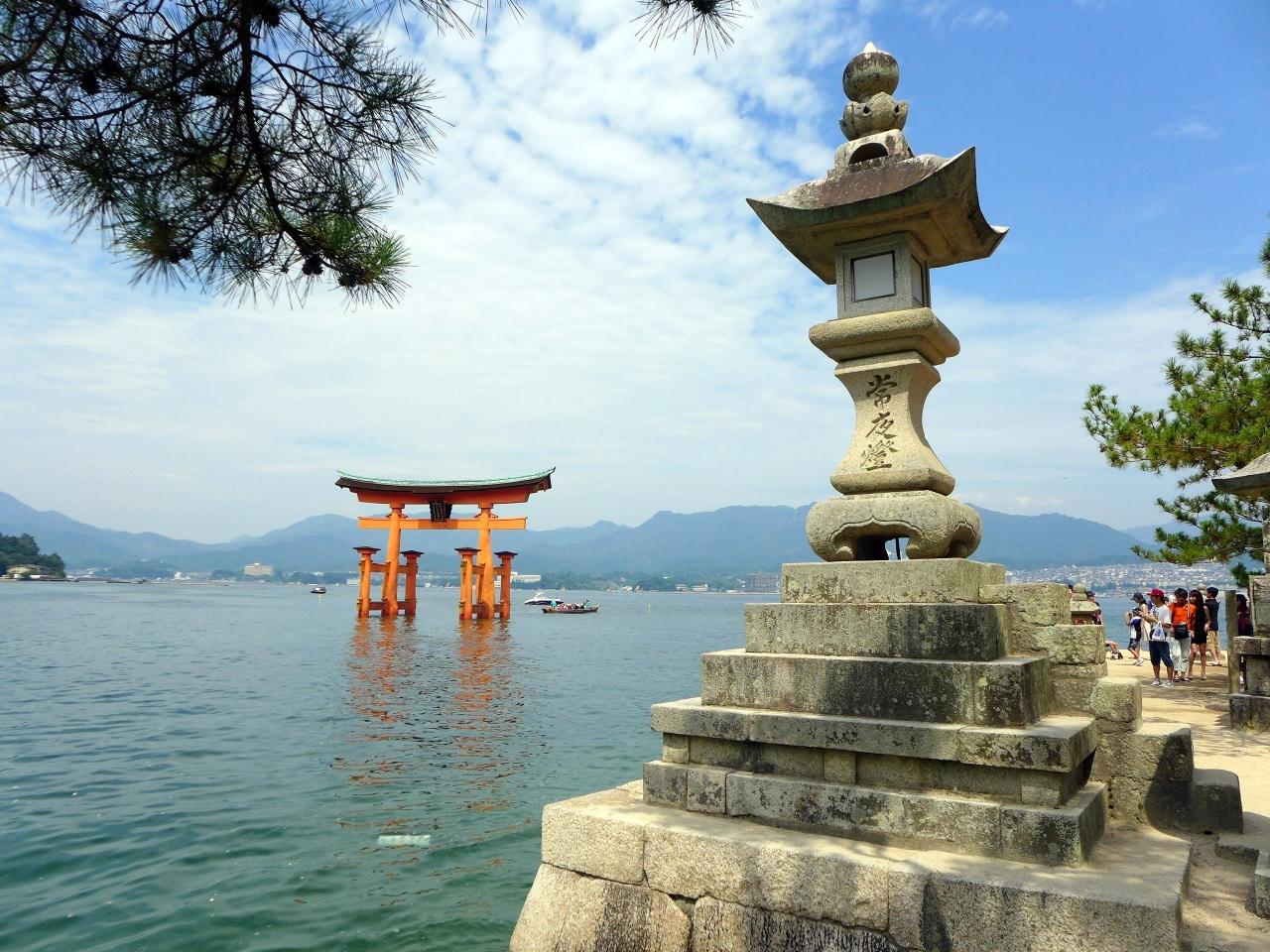 JR山陽本線・広島電鉄宮島口駅から徒歩すぐの、宮島桟橋から宮島航路で結ばれている広島湾沖合約2kmの厳島(宮島)に、世界遺産 厳島神社があります。