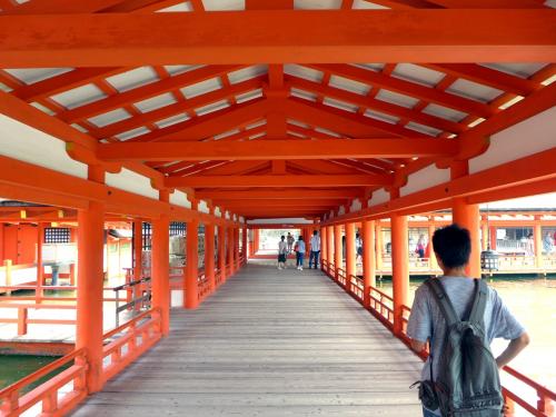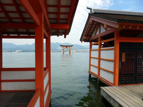 海の上に建てられた社殿は、美しい回廊で結ばれていて、どの角度から見ても見応えがあります。