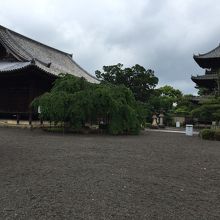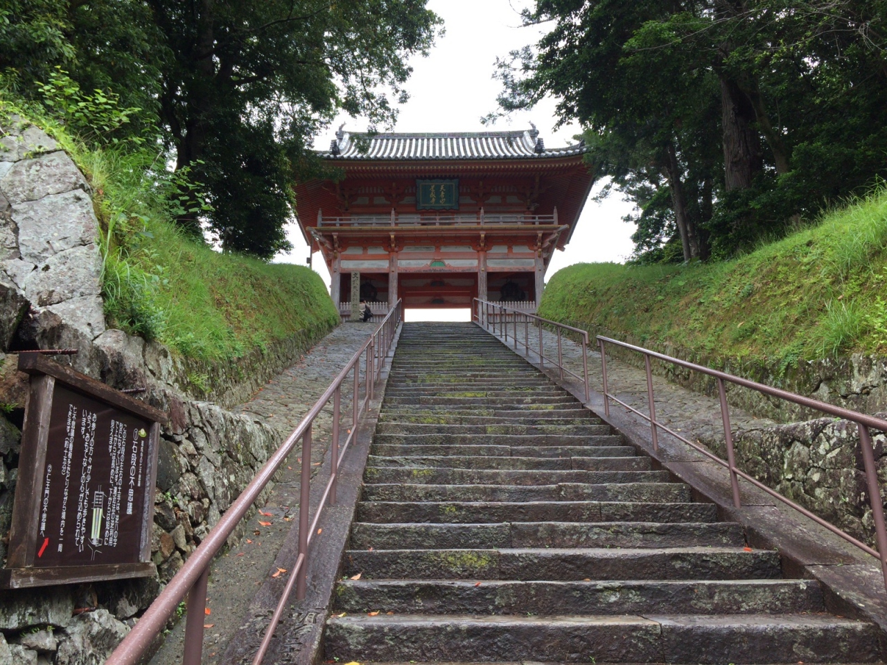 有料駐車場に車を停めて、階段を上った先の山門をくぐると広い境内が広がっている。