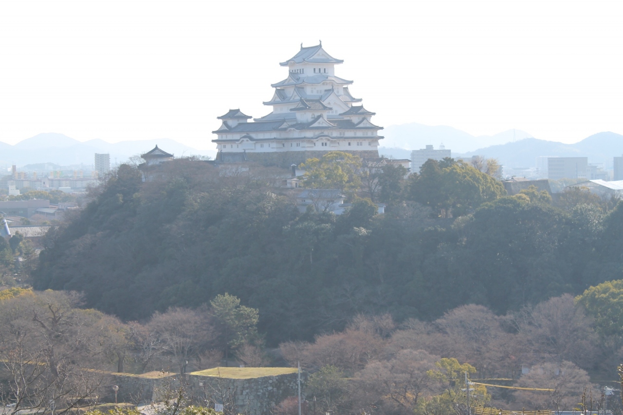 頂上からの姫路城は午前中は逆光であまり白くは見えなかった。