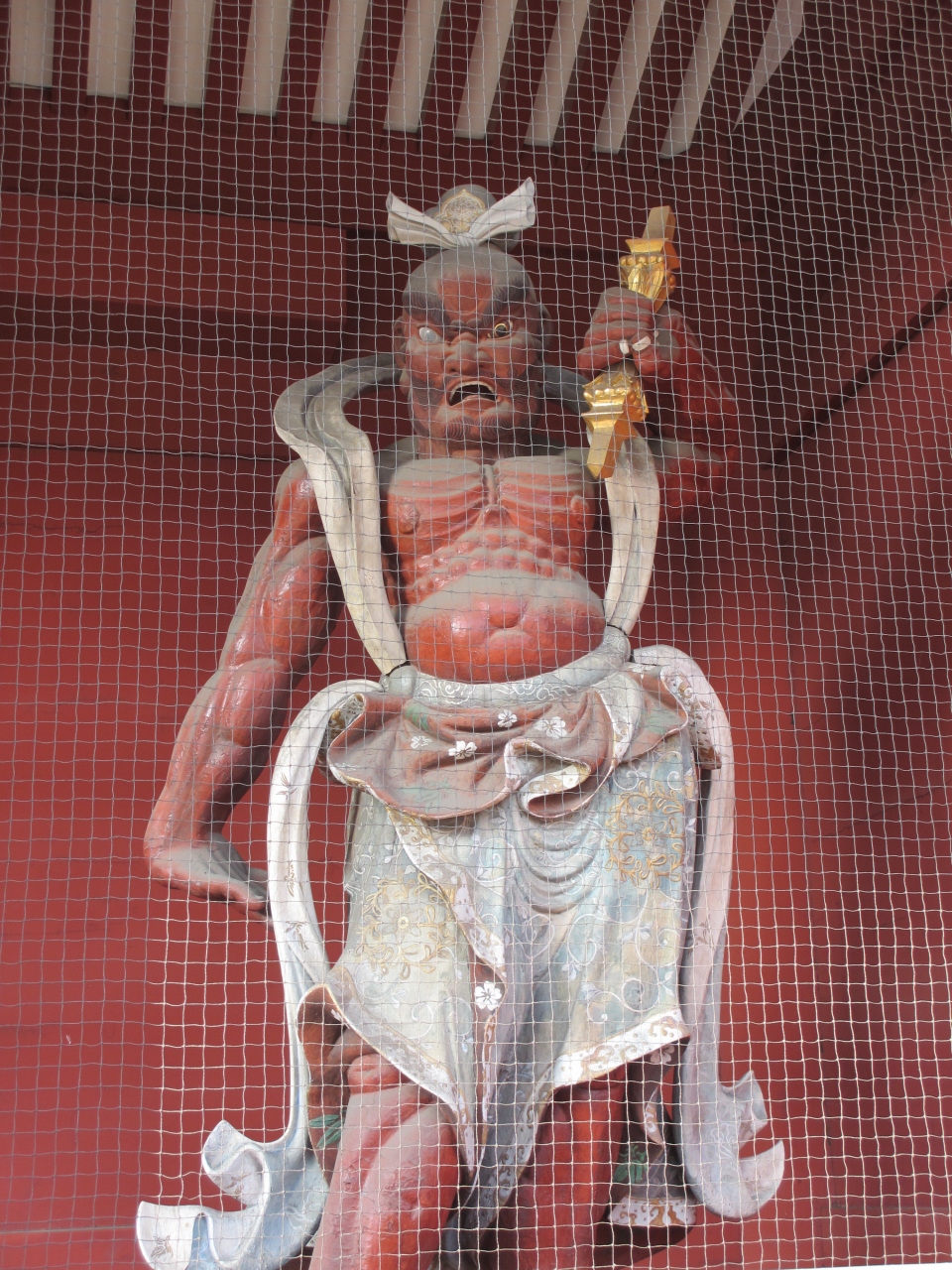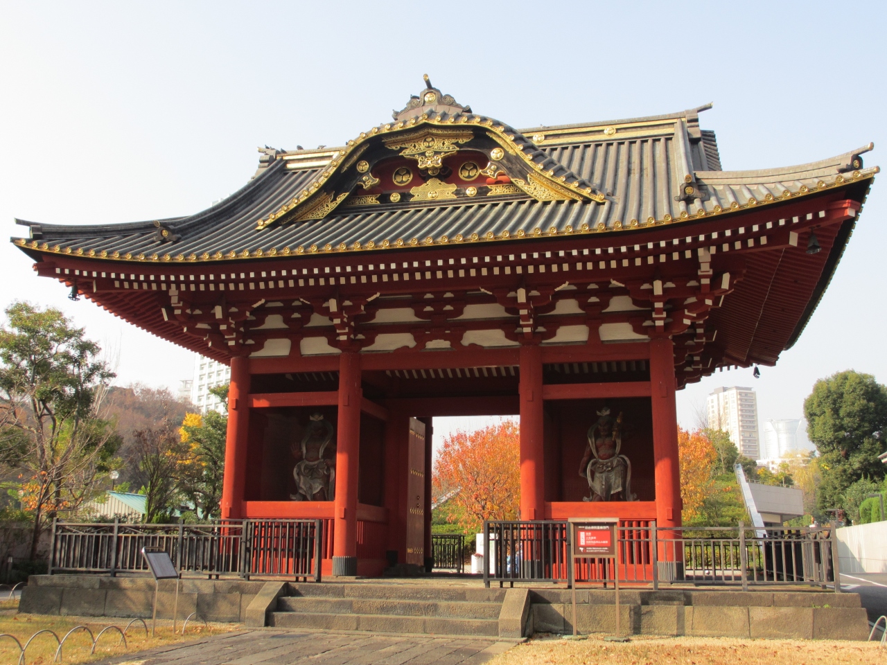 かつて徳川秀忠の霊廟があったところに建っている旧台徳院惣門の両脇に飾られている寄木造の仁王像です。もとは現在の埼玉県川口市の西福寺の仁王門に安置されていましたが、その後、浅草寺に移され、昭和になって今の地に安置されました。1700年代前半に250?ほどの木造仁王像として製作されました。