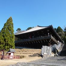 大仏殿より東、小高い丘の中腹に位置する二月堂は十一面観音を本尊としているお堂です。大仏還眼の年以降続いている3月の「お水取り」の行事はTVのニュースで報道されるなどして良く知られています。これが行われるのが、ここ二月堂です。