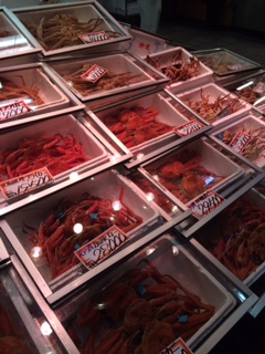 メインの魚介類のほか、青果、惣菜系もあり、食べ歩きも出来ました。おでん、海鮮、コロッケ、まるごとオレンジジュース、じろあめソフトと、主食からデザートまで食べることができ、大満足です。