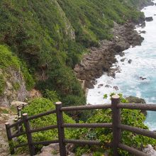崖へと降りて行く道、階段はロープがかかり通行止めになっていました。
