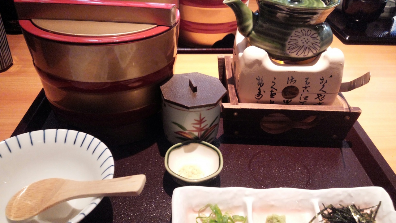 今年の旅行の目的が飛騨牛を堪能することでしたが、道中の高速のサービスエリア内に楽しめる処があることを知り、「かごの屋」さんを昼食場所として利用しました。昼食時間でしたので、40分ほど待って案内されましたが、店内はサービスエリア内に併設ですが、雰囲気もあります。頼んだメニューは、ひつまぶし膳(@2894円税込)です。うなぎのひつまぶし同様に、1そのまま、2プラスわさびをつけて、最後にプラスだし と3つの味を楽しみました。
