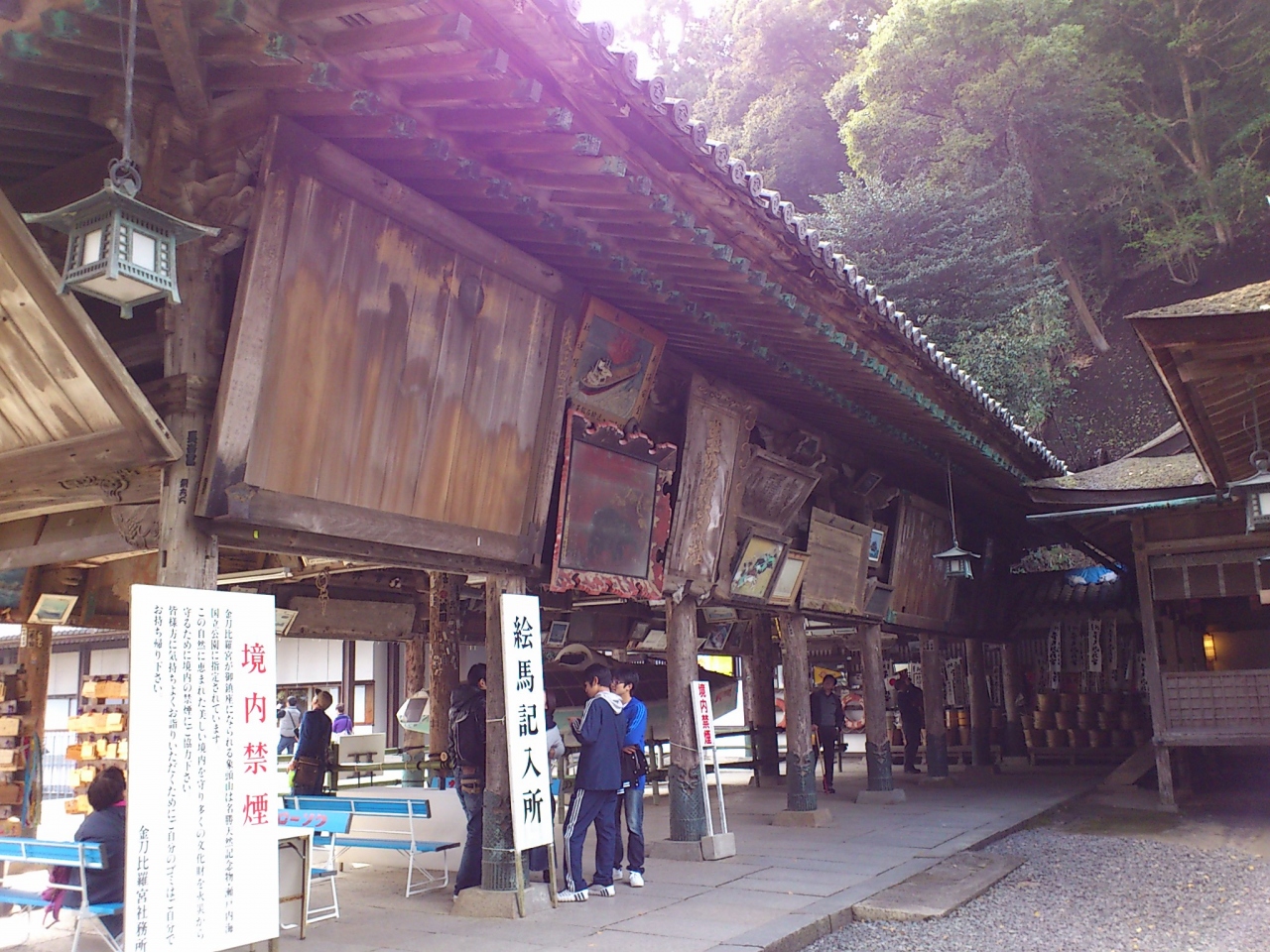 御本宮の左隣には穂津姫社があり、そのまた左隣にこの絵馬殿があります。金比羅さんは海の航海の神様なので、海にまつわる絵馬がたくさんあります。絵馬も普通の絵馬だけでなく、写真つきの絵馬もあります。また絵馬だけでなく、回天という名前の船も置いてありました。