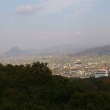 金毘羅さんの御本宮まで785段の石段を必死の想いでようやく登り切りました。御本宮から讃岐を一望することができます。ここまで来る間に何度か後ろを振り向いて景色を眺めましたが、この御本宮の展望台からの眺めは格別です。小さな富士山の形をした讃岐富士が可愛いです。