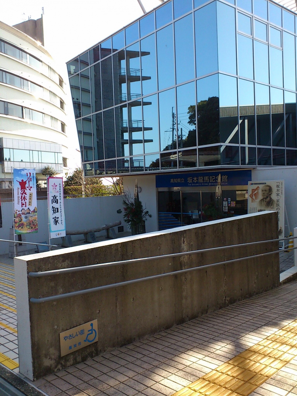 桂浜の丘の上に建っている坂本龍馬の記念館です。高知駅からMY遊バスで行きました。桂浜の丘の上にあるので、先にこのバス停で降りて坂本龍馬記念館を見学してから、桂浜へ降りていくと楽です。逆だとかなりの坂を登ることになります。正面入口には龍馬の像が出迎えてくれます。龍馬の生い立ちから成人期まで、いろいろなものが展示されています。