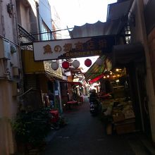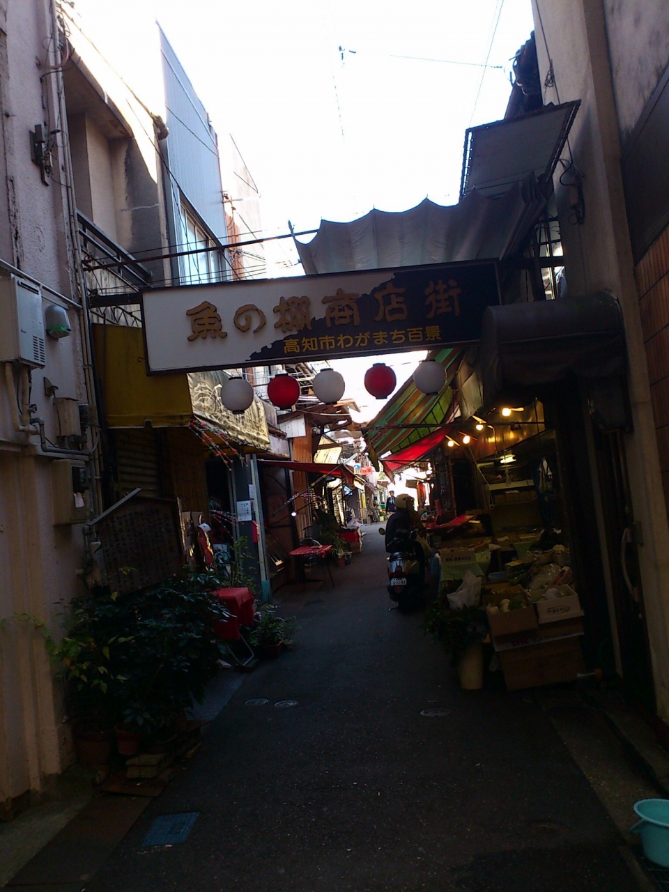 観光案内に載っていたので見つけることができましたが、そうでなければ通り過ぎてしまうような小さな商店街です。木造アーケードで有名なはりまや橋商店街を歩いていると、脇道に魚屋さんが集まった昭和を感じる商店街があります。