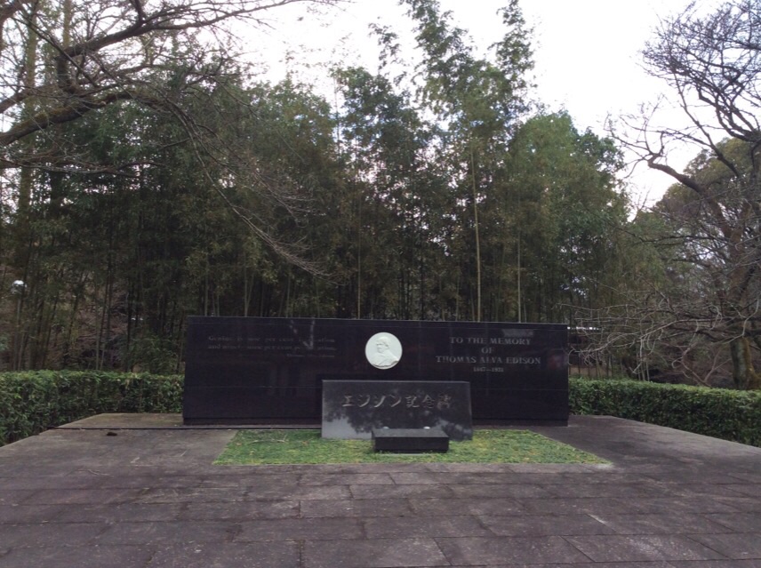 発明王エジソンの電球のフィラメントにもっとも適しているものとして選ばれたのが八幡市の竹ということで、男山山頂の岩清水八幡宮の参道横の広場にありました。京阪八幡市駅前にはエジソン通りもあって、エジソン推しの様子が興味深かったです。