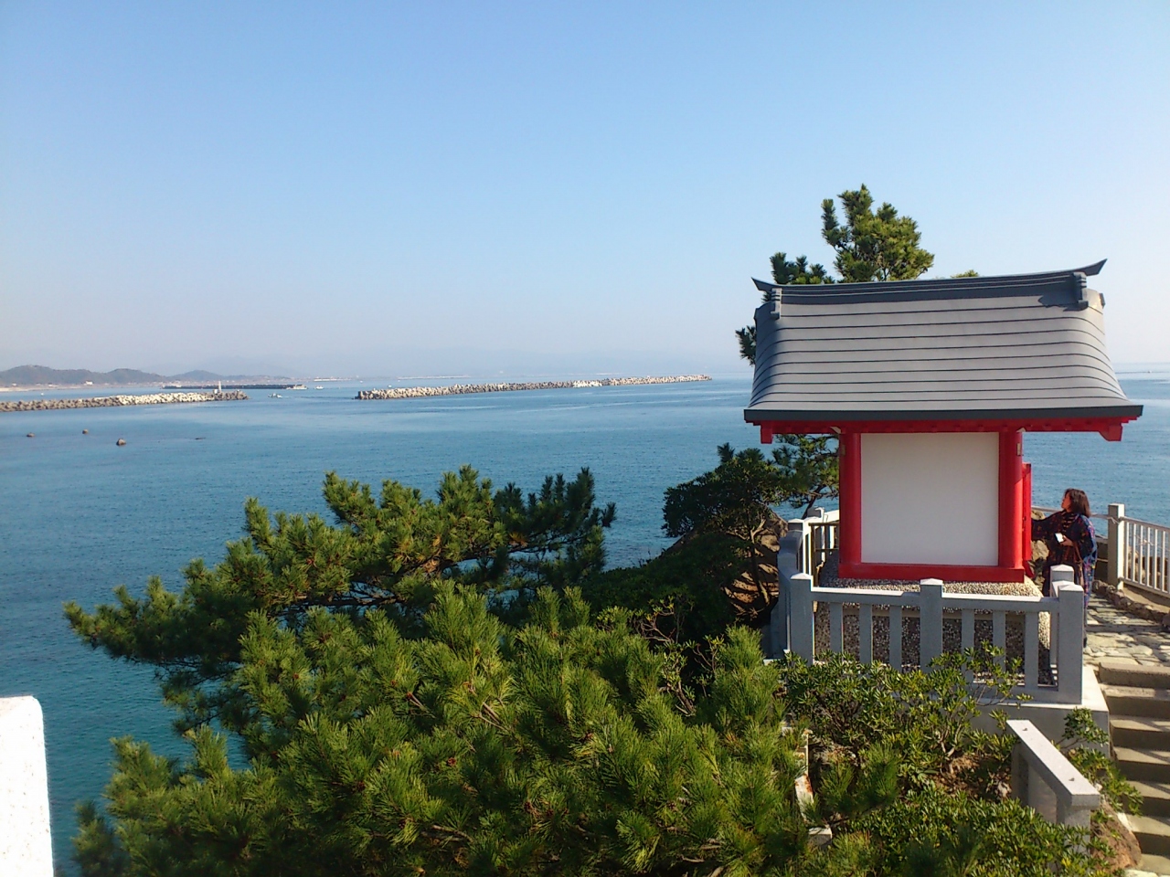 桂浜の左側に坂本龍馬像がありますが、、桂浜の海に向かって右手の小高い丘の上にこの龍王宮があります。多くの観光客がこの丘を目指して歩いて行くので、後を付いて行けばたどり着きます。丘の上には龍王宮の赤い祠があり、その上には展望台もあります。