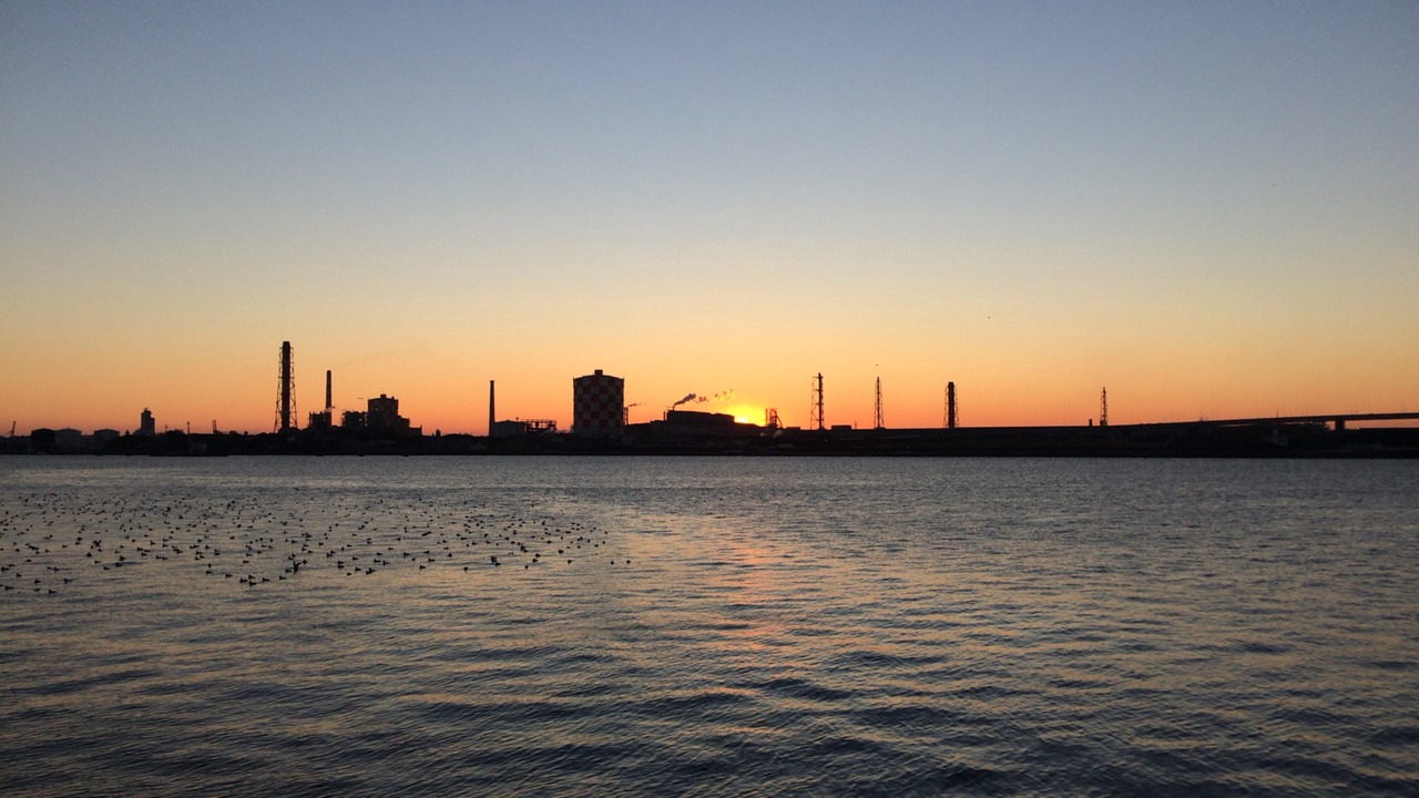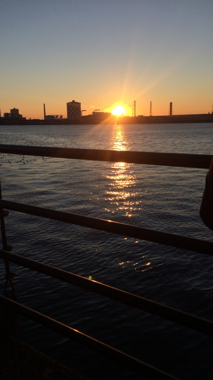 元旦の早朝。鶴見線始発に乗って海芝浦駅にて初日の出を見ました。