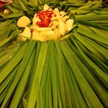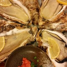 きれいに並べられたニラの下にたくさんのもつ?と思っていたのにもつも少な目(T-T)味も特筆するほどのことはなく、店内も狭く落ち着かず。本日のお勧めと言われた生牡蠣も大きいだけで生臭くイマイチでした(そして高い)